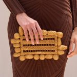 Elevate your evening ensemble with this beautifully reimagined version of our iconic rattan clutch, featuring elegant tonal oblong rattan beads that gracefully frame the edges for a sophisticated finish.