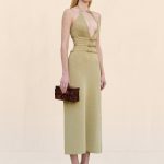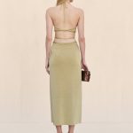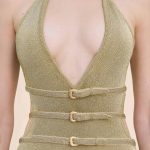 Elevate your wardrobe with this stunning gold knit midi-dress featuring four adjustable buckled straps that elegantly wrap from front to back for a customized fit.