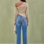Elevate your beachside style with this sophisticated long sleeve tape yarn top featuring a striking asymmetrical neckline and hem design.