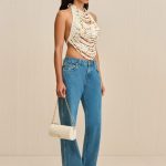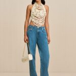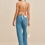 Elevate your summer wardrobe with this stunning halter top featuring intricate tangled cording adorned with beautifully crafted brass beads, complete with a secure bandeau and adjustable neck ties for a perfect fit.