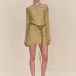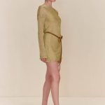 Elevate your style with this stunning sheer mini dress featuring our signature chainmail knit fabric and a fashion-forward asymmetrical neckline.