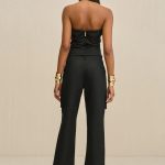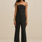 Elevate your wardrobe with this sophisticated strapless top crafted from premium suiting fabric, featuring elegant draped detailing at the midsection and a convenient center back zip closure.