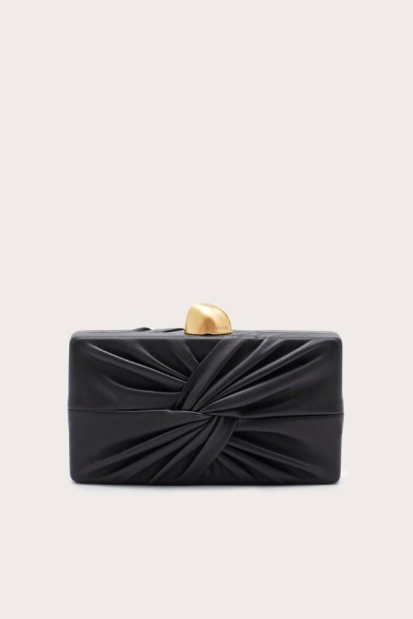 An exquisitely crafted clutch featuring a striking abstract gold top clasp and artful knotted leather detailing that elevates any evening ensemble.
