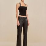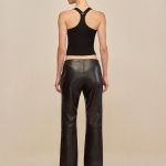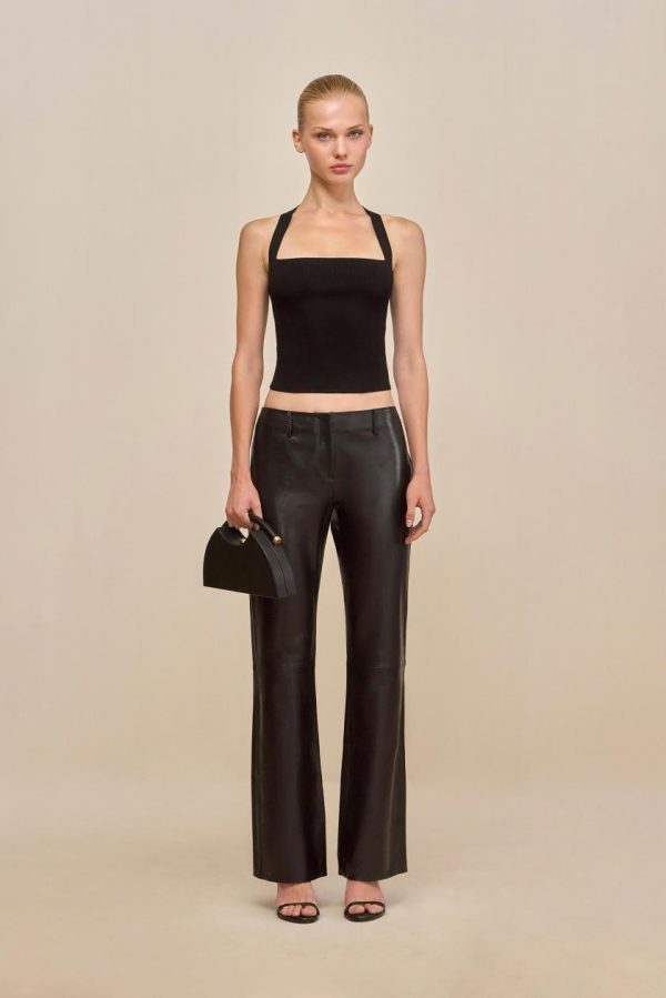 Elevate your wardrobe with these sophisticated straight leg pants, expertly crafted from supple leather with exquisite braided belt loop detailing.