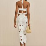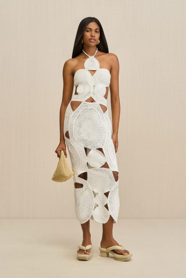 Experience artisanal elegance with this hand-crocheted dress featuring beautifully interwoven yarn patterns that create sophisticated cutout detailing.
