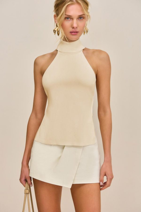 Cult Gaia Wake Knit Top in Sand | Women’s Open-Back Halter