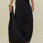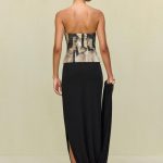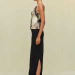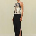 The Sola Skirt is a wearable piece of art crafted with a gold-toned buckle bracelet detail that can be worn on the wrist or attached to the waistband.