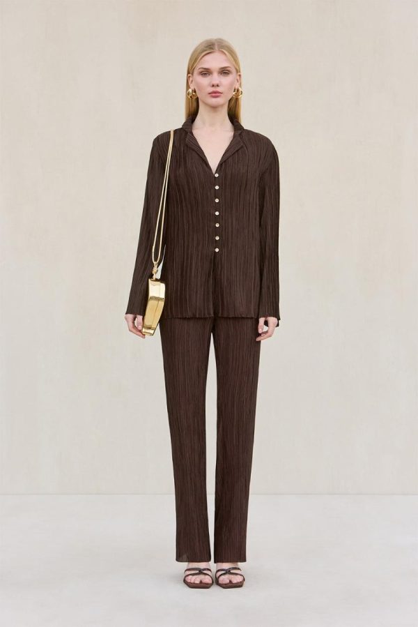 A bias cut origami plissé pant designed to hit at the mid to high waist.