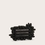 An updated version of our signature rattan clutch with tonal oblong rattan beads surrounding the edges.