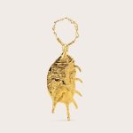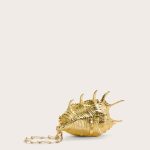 An objet d’art style handheld clutch designed in the shape of a conch shell that can be worn on the wrist or by hand.