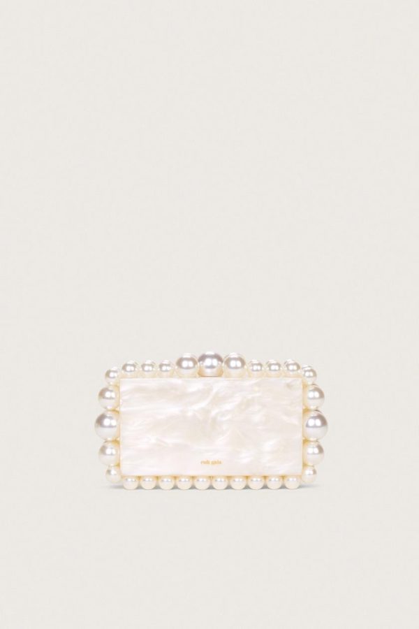 The Eos Box Clutch is an update from our loved Eos Box Bag. This clutch has beads surrounding the edges of the bag for a unique Gaia touch. Our classic Cult Gaia signature is printed in gold on one side of the clutch.
