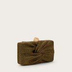 An everyday clutch with an abstract gold top clasp and knotted straw detailing.
