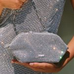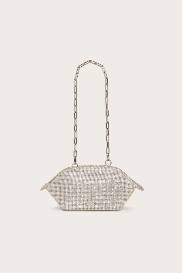 A sparkling clutch made of rhinestone mesh with a removable chain strap.