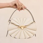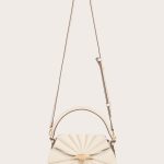 A smooth leather convertible bag with panel detailing and gold toned magnetic closure with embossed logo.