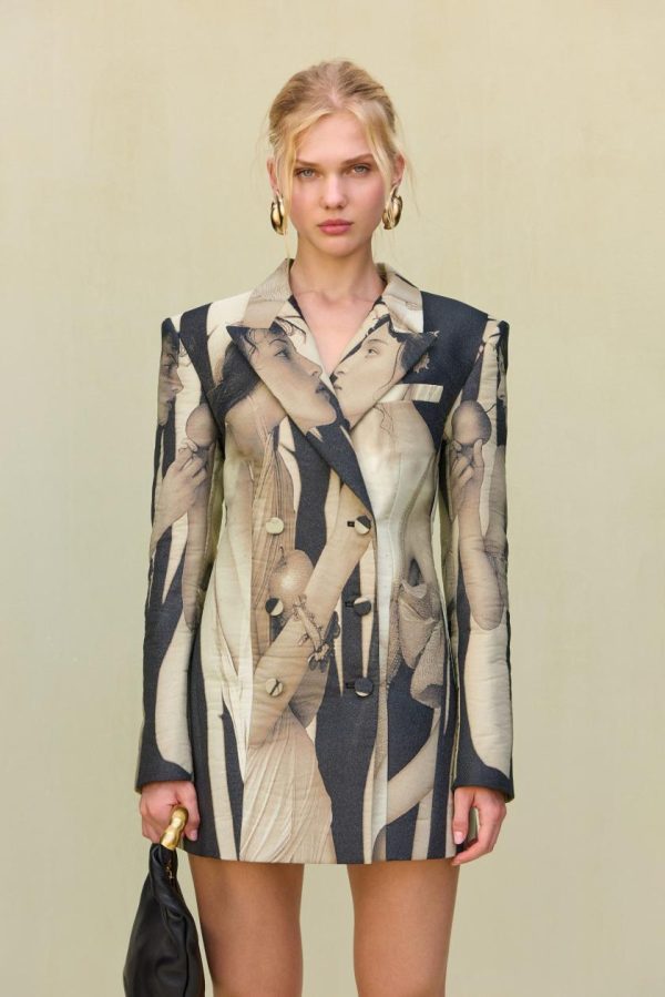An oversized double breasted blazer dress crafted from our picturesque portrait jacquard print that can be worn as a dress or a jacket.