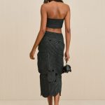 A full length raffia dress with a halter neckline and all-over sculptural cutouts.