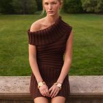 A high twist asymmetrical cotton mini dress with a fold over bust and body hugging silhouette.