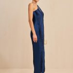 The Renata is a seductive halter gown. The layered and draped fringe skims the body creating luscious movement. The open back is a deep v-cut connected at the shoulders and echoed by a slit in the back of the skirt. Wear the Renata and plans and eyes will follow.