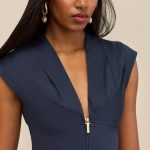 A poplin day dress featuring a front zip and flattering boning throughout the bodice.