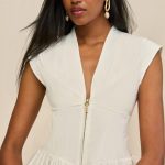 A poplin day dress featuring a front zip and flattering boning throughout the bodice.