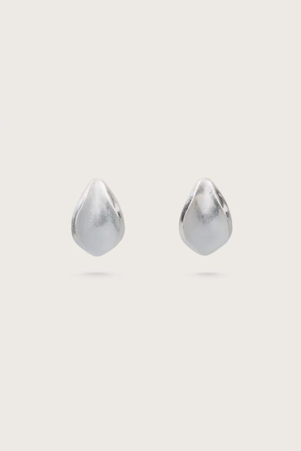 Designed from the shape of a flower petal, the Erin Earring is a silver-toned brushed brass clip-on style.