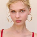 A pair of brushed brass hoop earrings featuring a delicate pearl and a swirl detail.