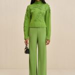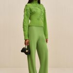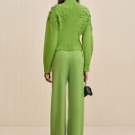 A cropped turtleneck sweater embellished with a corded knit floral overlay.