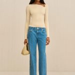 A sleek knit long sleeve featuring an asymmetrical neckline adorned with a ringed hardware detail.