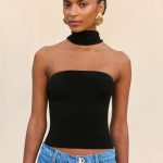 A versatile strapless knit that can be worn two ways: as a choker top or a halter top with a knot front detail.