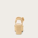 A platform sandal fashioned out of knitted raffia with a gold-toned abstract buckle detail.