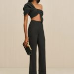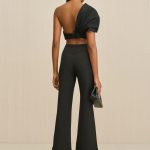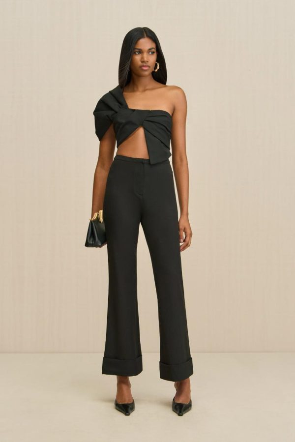 A sleek suiting pant, featuring a cuffed hem and flared silhouette.