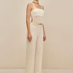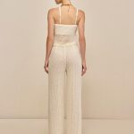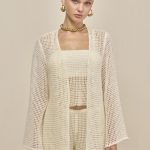 A cropped, open-weave knit top with a lined bust and zipper back closure.