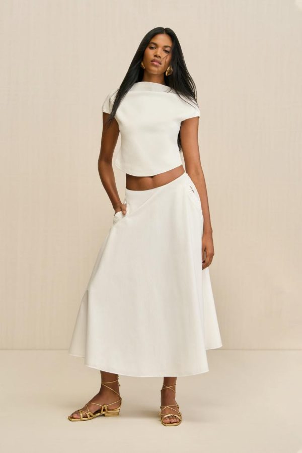 An everyday poplin skirt with a low rise fit and functional side pockets.