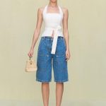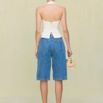 A halter top designed in a lightweight poplin with a tie detail at the front.