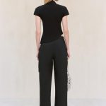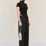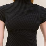 An asymmetrical short sleeve knit top with flattering radial stitch detailing.
