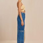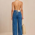 A one-of-a-kind bandeau top featuring a unique and intricately-crafted raffia design.