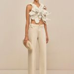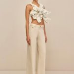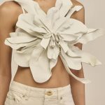 A molded leather flower backless top with back ties.
