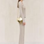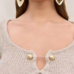 A long sleeve knit top with sculptural bust details in signature gold toned brass.