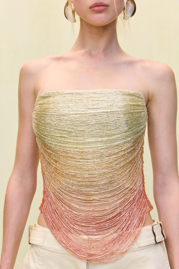 The Pandora Top is a work of art crafted out of layered beaded ombre fringe.