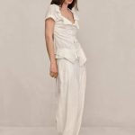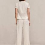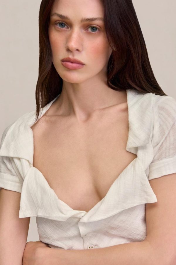 A peasant style top made from textured voile with lapels and a functional button down front.
