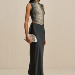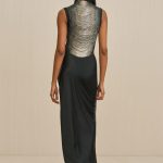 An artisanal top rendered in hand beaded ombre arcs over a mesh underlayer.